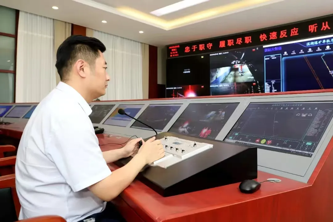 在濱湖煤礦的調(diào)度指揮中心,工作人員輕點鼠標,設(shè)置好起點與終點,百米井下,滿載物料的單軌吊機車如同智能使者,沿著預(yù)設(shè)路線自動行駛,沿途語音播報、司控道岔、風(fēng)門自動開關(guān),一切盡在掌握之中!包c對點無人駕駛”讓復(fù)雜的煤礦運輸變得簡單而高效。